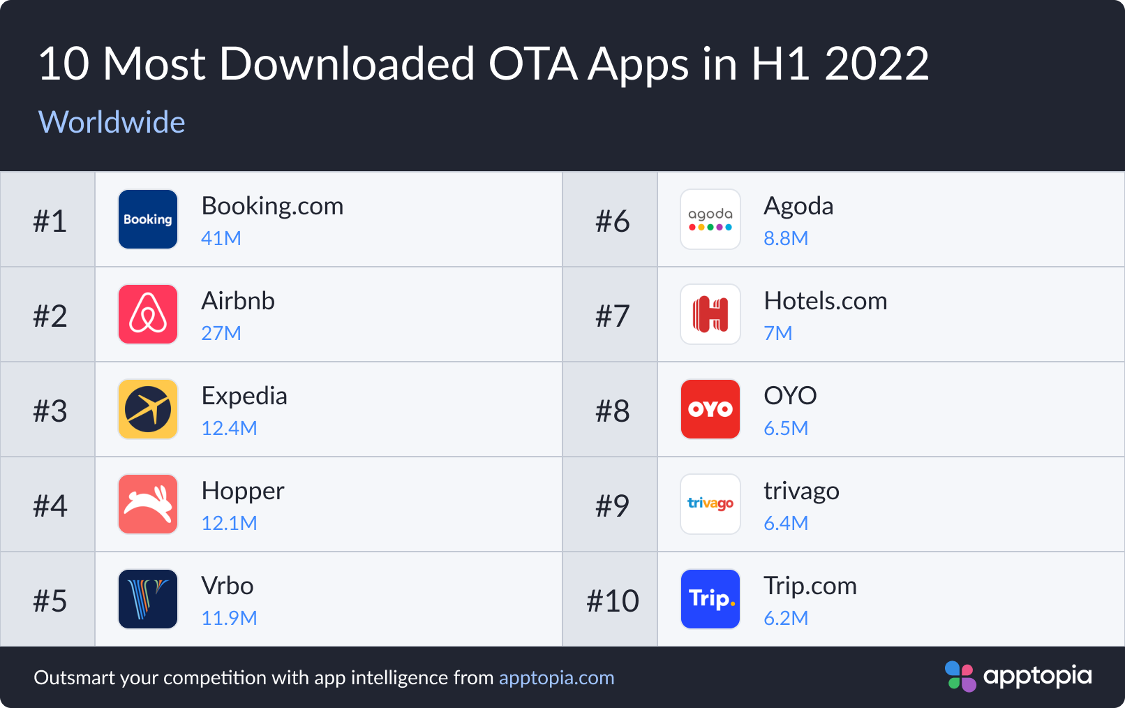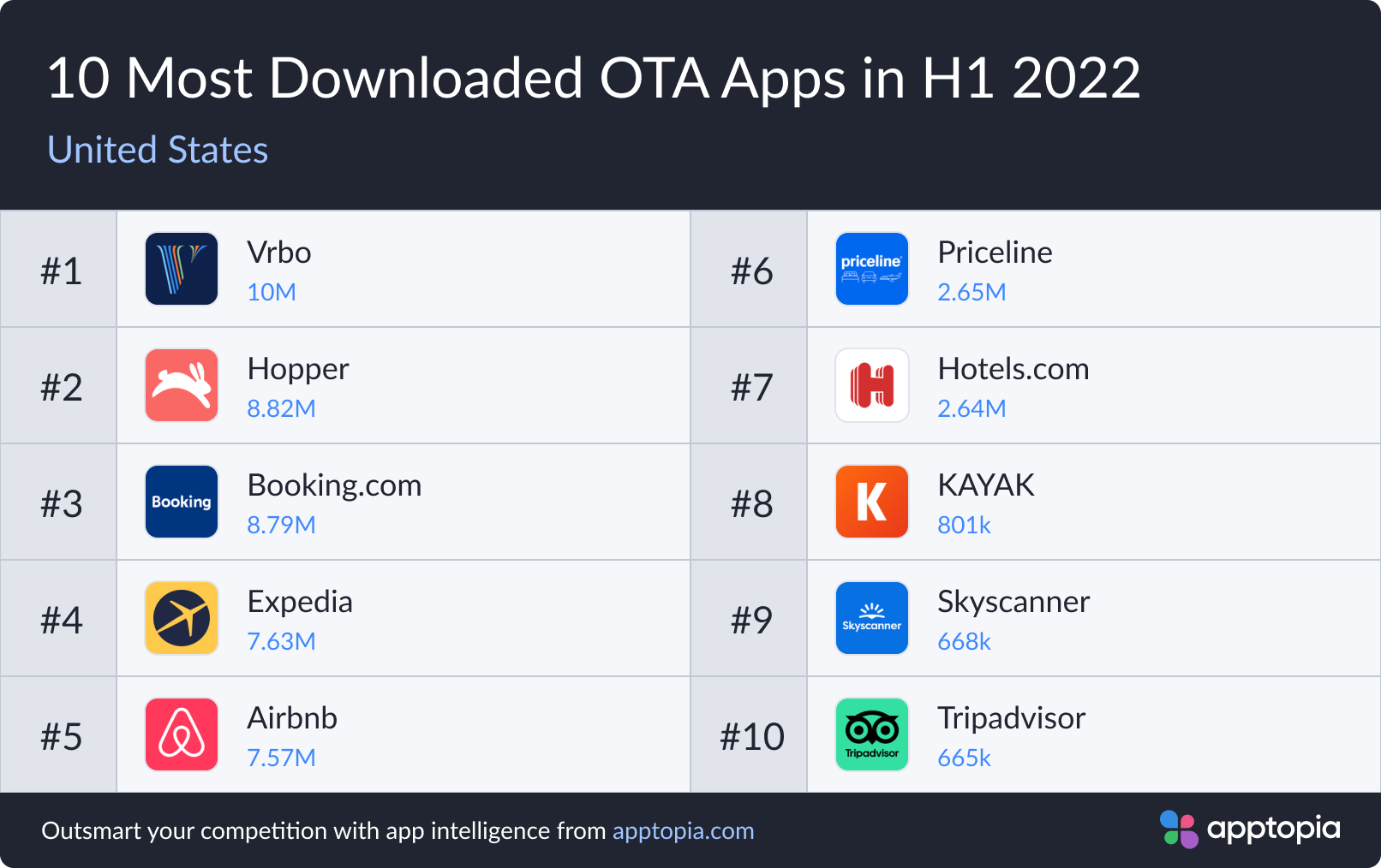 The reality is that pent up demand to travel at the lowest cost is causing fierce competition among OTAs, and we are witnessing them place their bets on growth. Airbnb bet on a significant redesign, Amsterdam-based Booking.com confirmed its priority is mobile growth in the U.S., and Hopper reported its developing a Super App. From our view, Expedia looks to be streamlining its focus to growing VRBO and its own app instead of subsidiaries Hotwire, Orbitz, Travelocity, which made 2021's top 10 list but do not appear here.